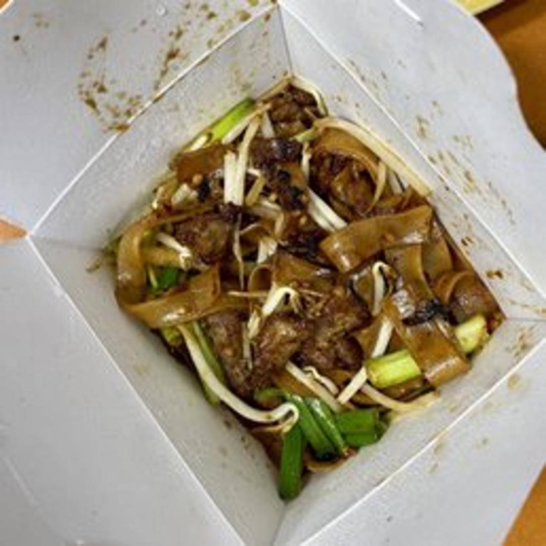 Wide rice noodles stir-fried with tender slices of beef, bean sprouts, onions, and scallions in a savory soy-based sauce.
