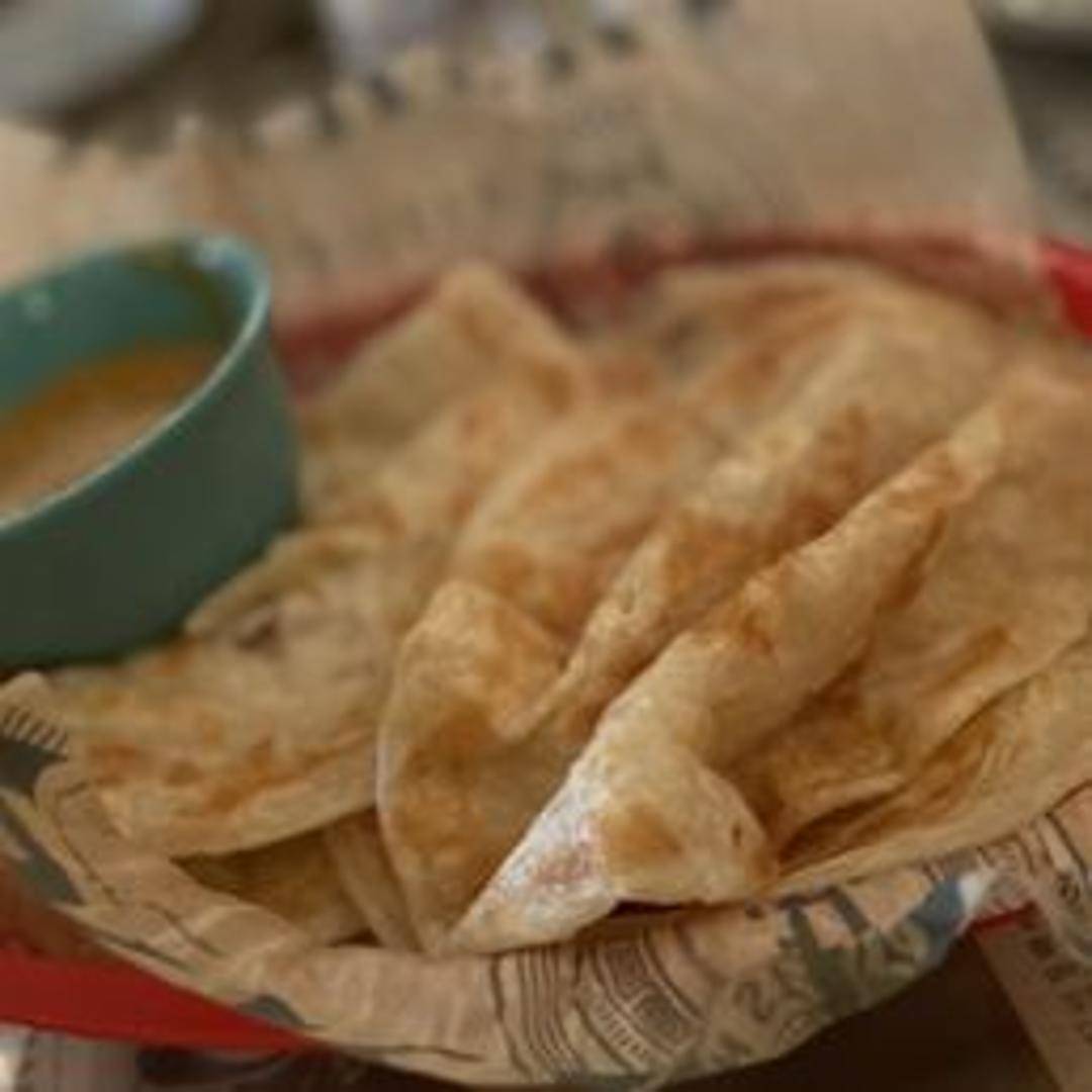 Flaky and buttery Malaysian flatbread served with a flavorful curry dipping sauce.