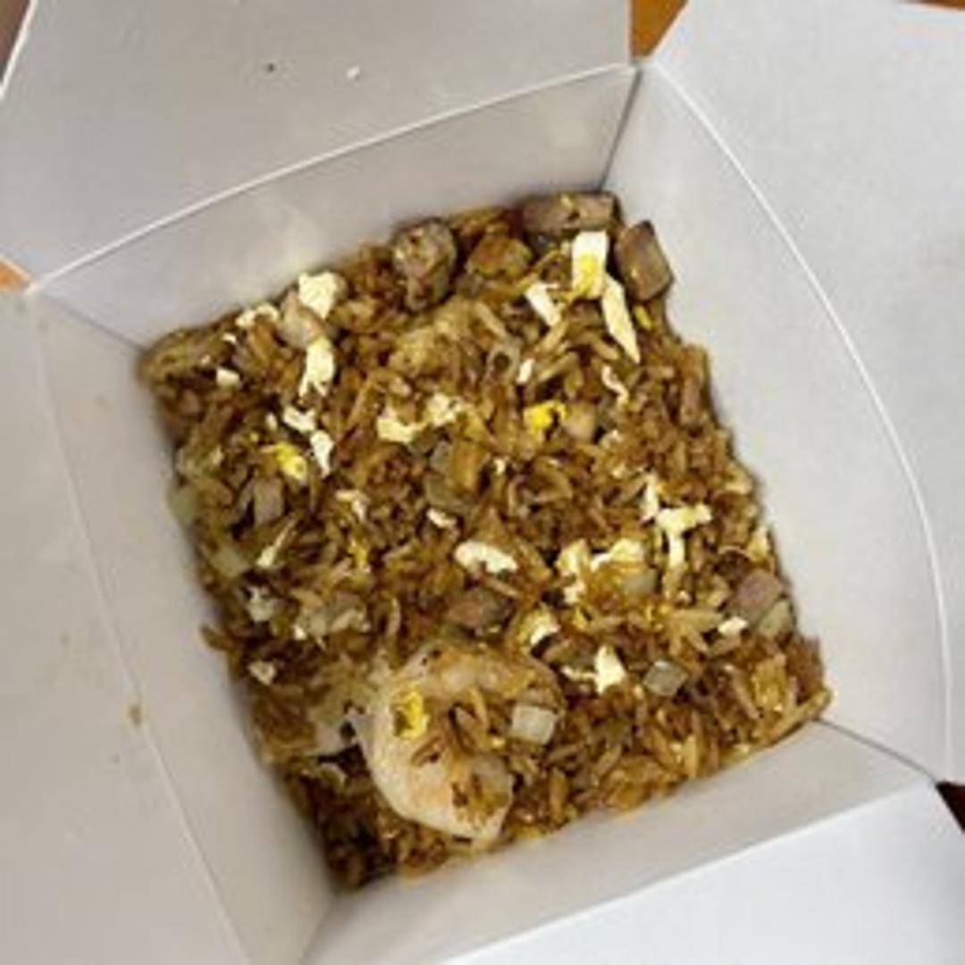 Stir-fried rice with your choice of protein (chicken, pork, beef, or tofu), mixed vegetables, and egg in a savory soy-based sauce.