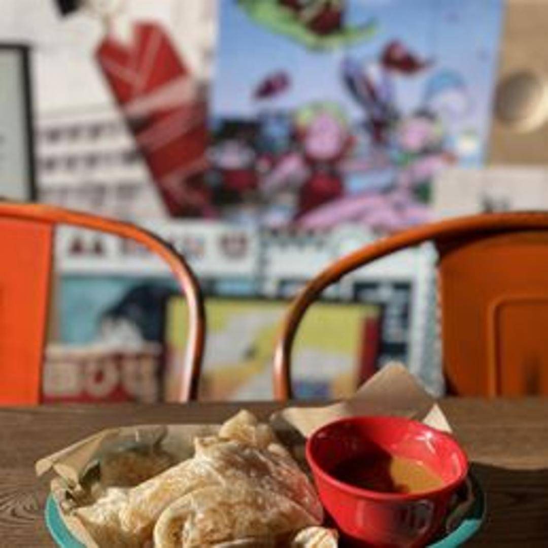 Flaky, buttery Malaysian flatbread served with a side of flavorful curry dipping sauce.