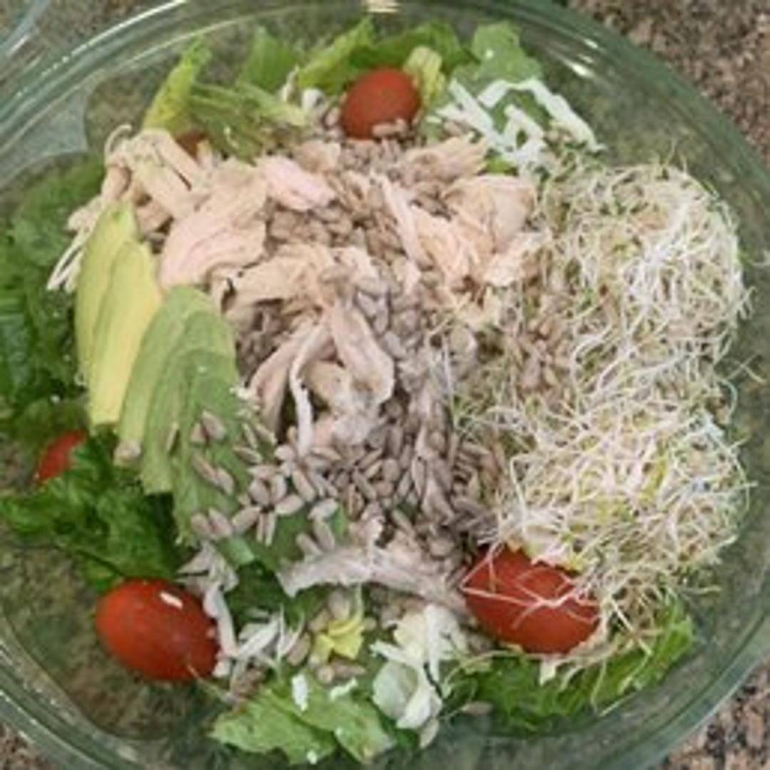 A classic and satisfying salad composed of crisp lettuce, sliced turkey, ham, Swiss and cheddar cheese, hard-boiled eggs, tomatoes, and cucumbers, served with your choice of dressing.