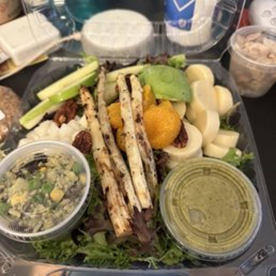 Mixed greens, grilled chicken, avocado, cucumbers, carrots, tomatoes, and sprouts with a light lemon vinaigrette.