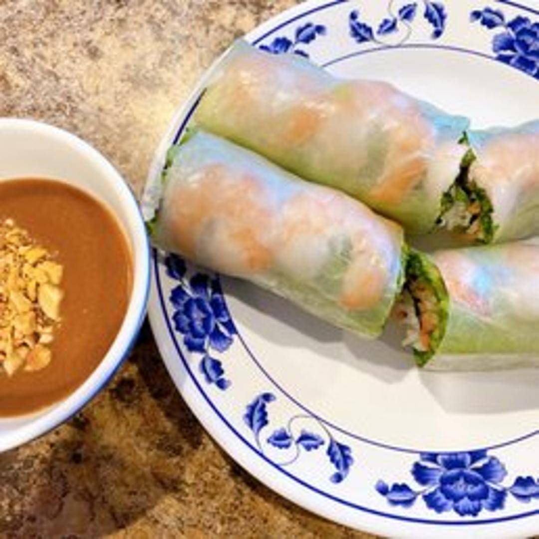 Fresh rice paper rolls filled with vermicelli noodles, lettuce, shrimp, pork, and other fresh herbs. Served with a peanut dipping sauce.