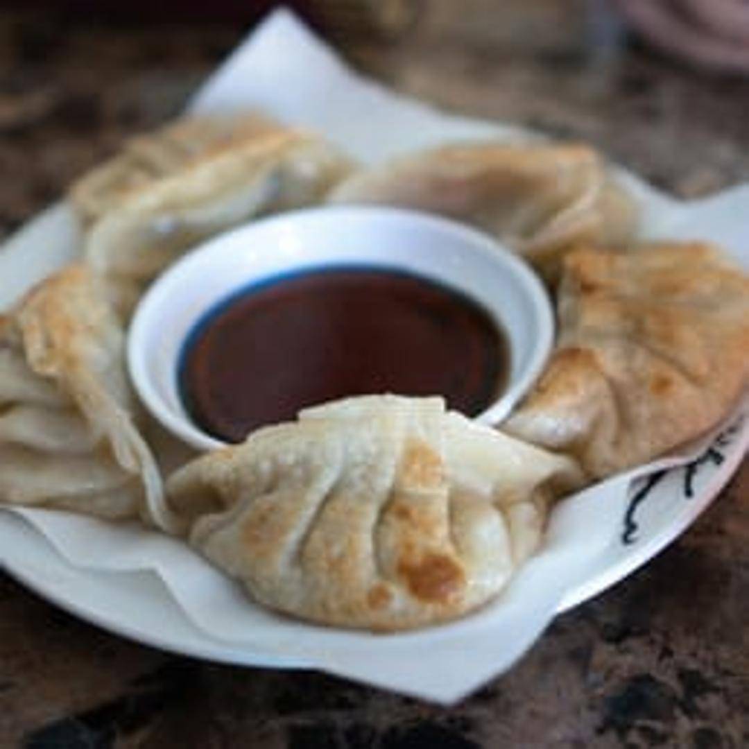 Pan-fried dumplings filled with a savory mixture of ground meat and vegetables. Served with a dipping sauce, usually a soy sauce based sauce with vinegar and other seasonings.