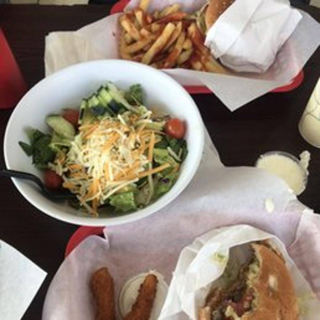 A classic, smaller-sized hamburger featuring a juicy beef patty, crisp lettuce, fresh tomato, sliced onion, and tangy pickles, all nestled between a soft, toasted sesame seed bun. Condiments such as ketchup, mustard, and mayonnaise are available upon request.