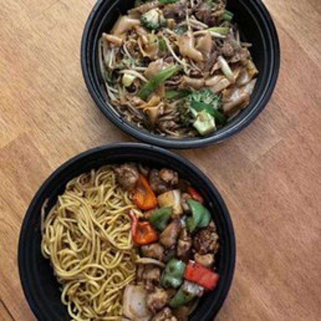 Egg noodles tossed in a flavorful garlic butter sauce, often topped with Parmesan cheese.