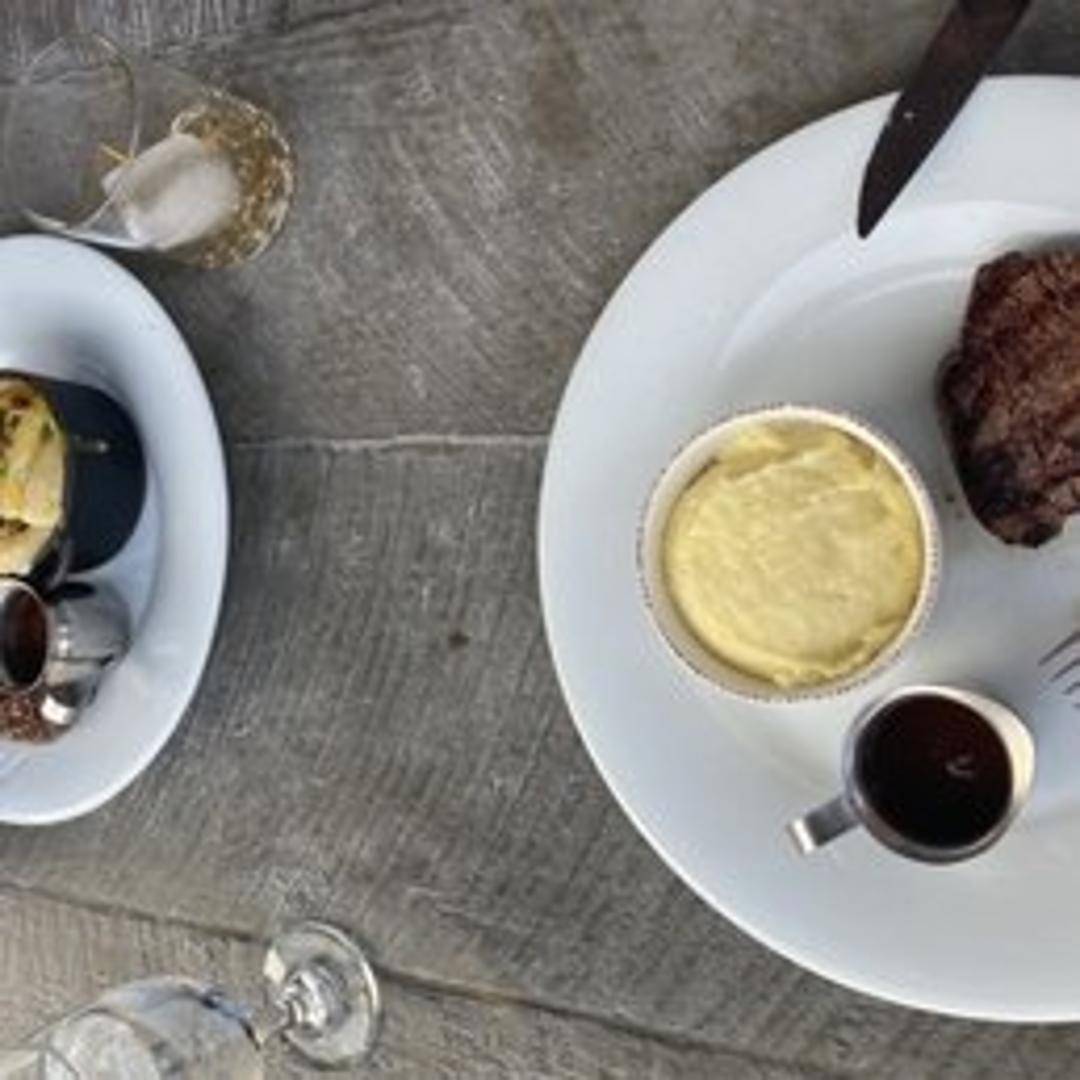 A perfectly grilled 8oz New York Strip Loin steak, known for its robust flavor and firm texture. Served with your choice of side.