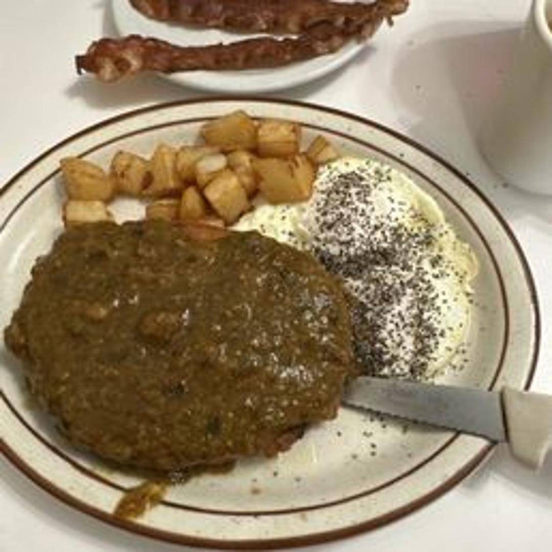 Our Green Chili is a Colorado staple! Made from a blend of roasted green chiles, pork (may offer vegetarian option), tomatoes, onions, and a secret blend of spices. Slow-cooked to perfection, resulting in a rich, flavorful, and slightly spicy stew. Perfect for warming you up on a chilly day. Enjoy it served over [Specify suggested pairings e.g., eggs, potatoes, burritos, or as a soup]. Heat level is [Specify spice level e.g., mild, medium, or hot].