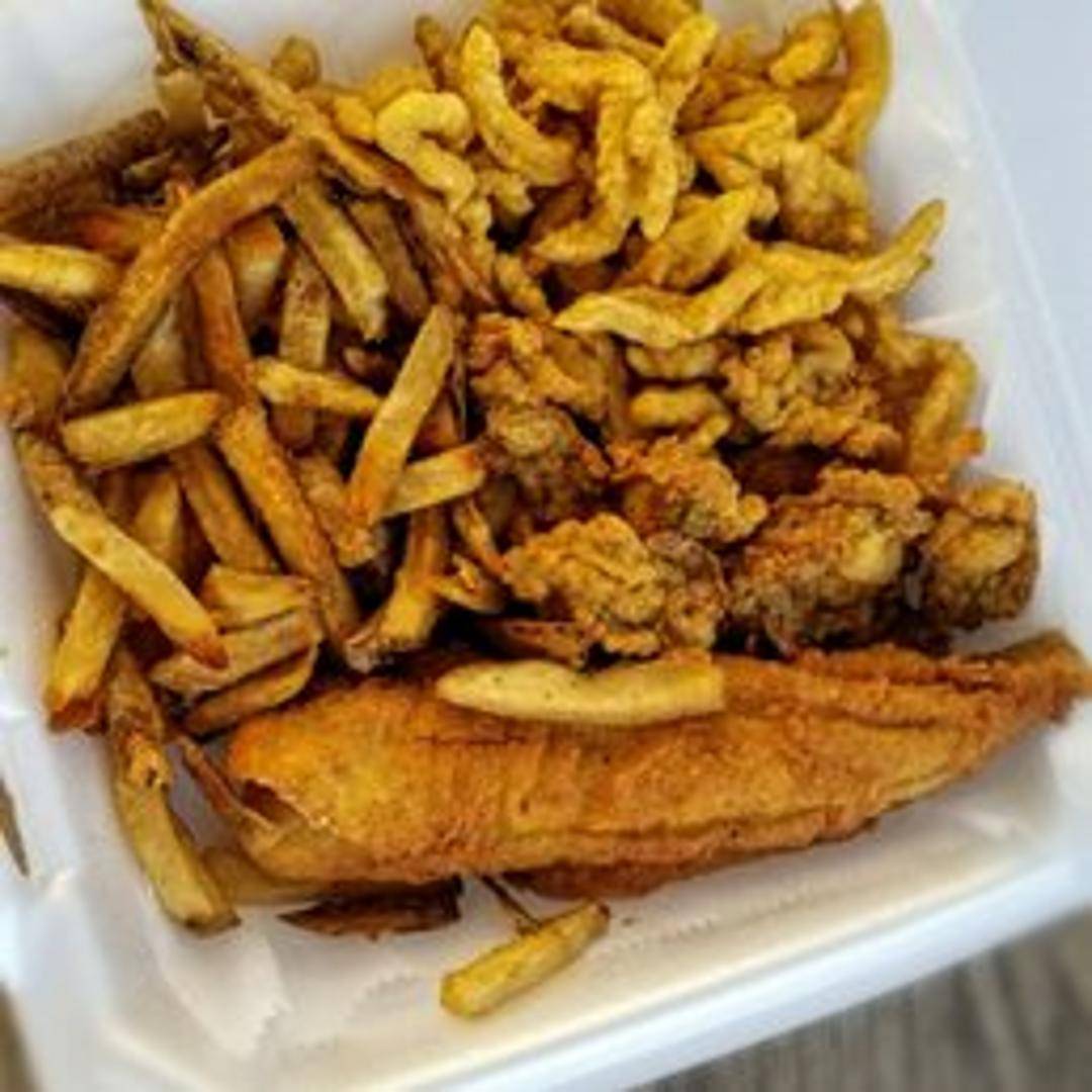 A selection of fresh seafood, lightly battered and fried to a golden crisp. Includes a variety of fish, shrimp, and scallops. Served with your choice of dipping sauce and a side.