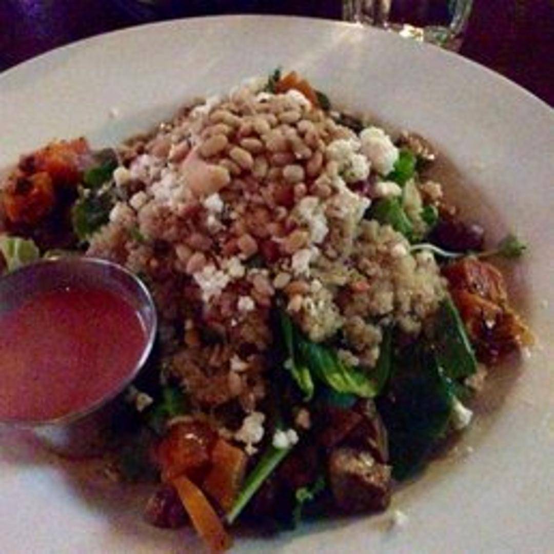 Quinoa mixed with fresh vegetables, herbs, and a light vinaigrette dressing.