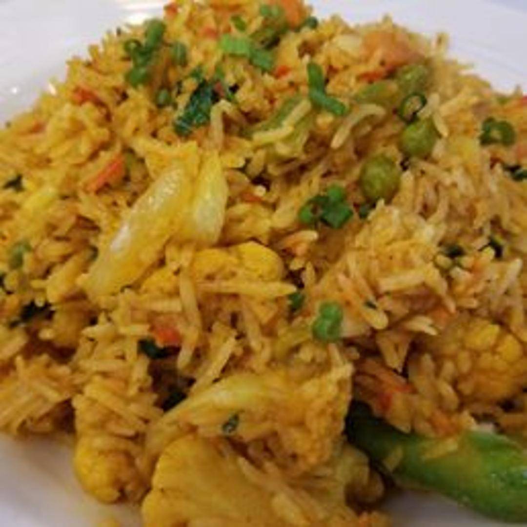 Aromatic and flavorful mixed rice dish made with basmati rice, spices, vegetables, and meat (chicken, lamb, or goat are common). Often garnished with fried onions, cilantro, and mint.