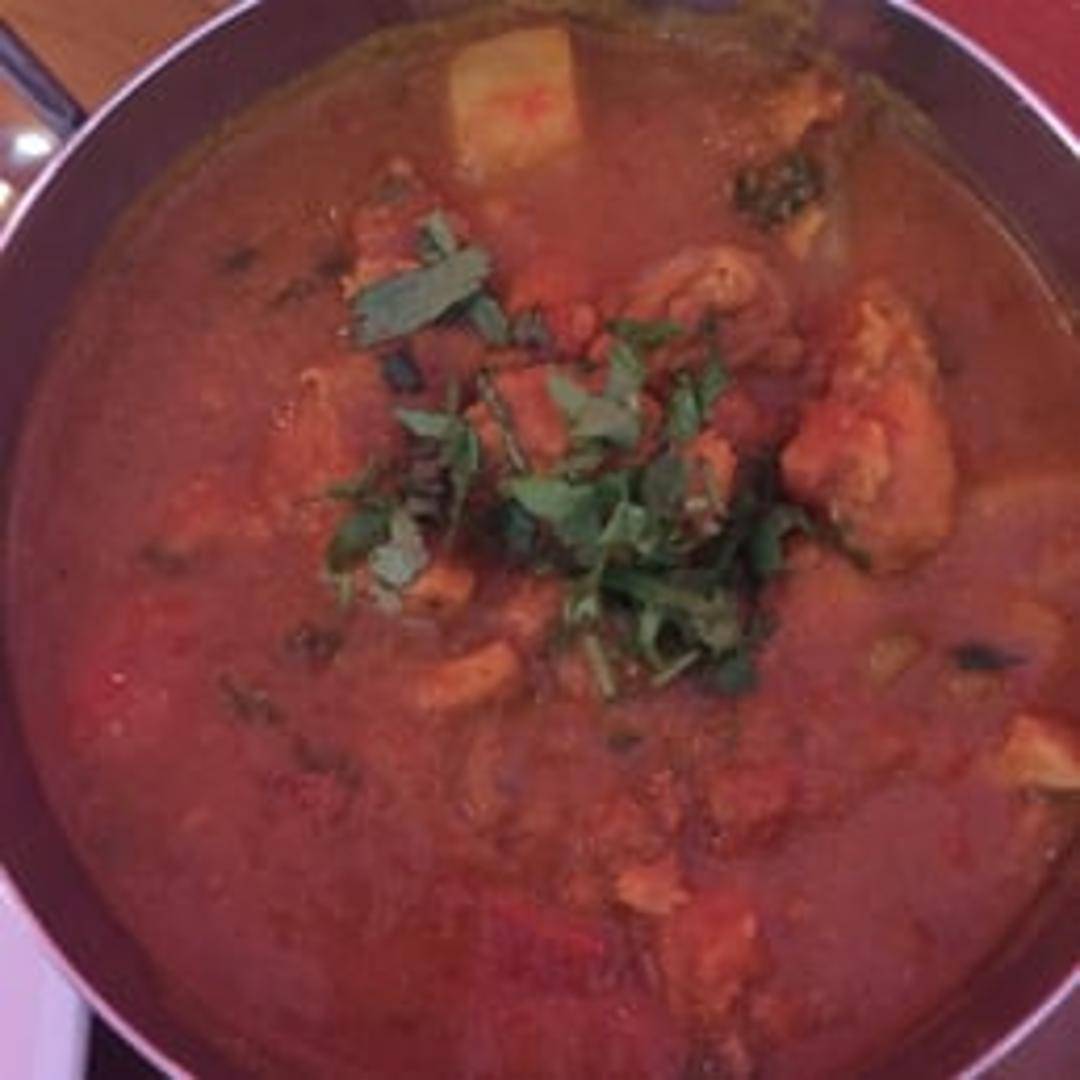 Succulent pieces of chicken cooked in a fiery Goan-style vindaloo sauce with potatoes, spices, and vinegar. A rich and flavorful curry with a distinct spicy kick.