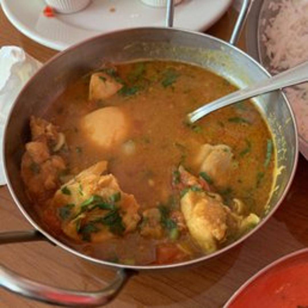 Tender pieces of chicken simmered in a flavorful blend of Himalayan spices, tomatoes, onions, ginger, and garlic. Prepared in a rich and creamy curry sauce, served with a side of basmati rice.