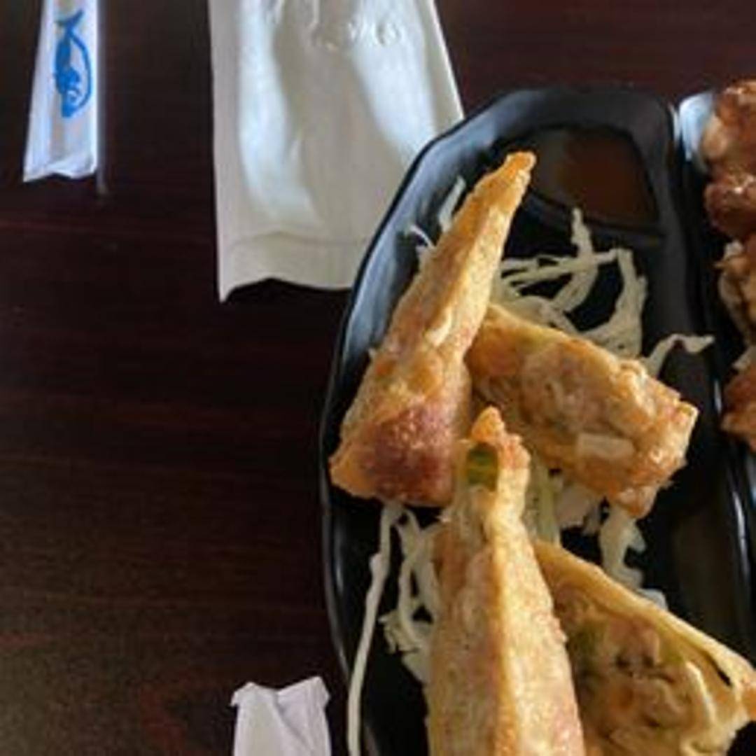 Crispy, deep-fried egg roll filled with a savory mixture of shredded cabbage, carrots, and other vegetables, seasoned to perfection. Served with a side of dipping sauce.