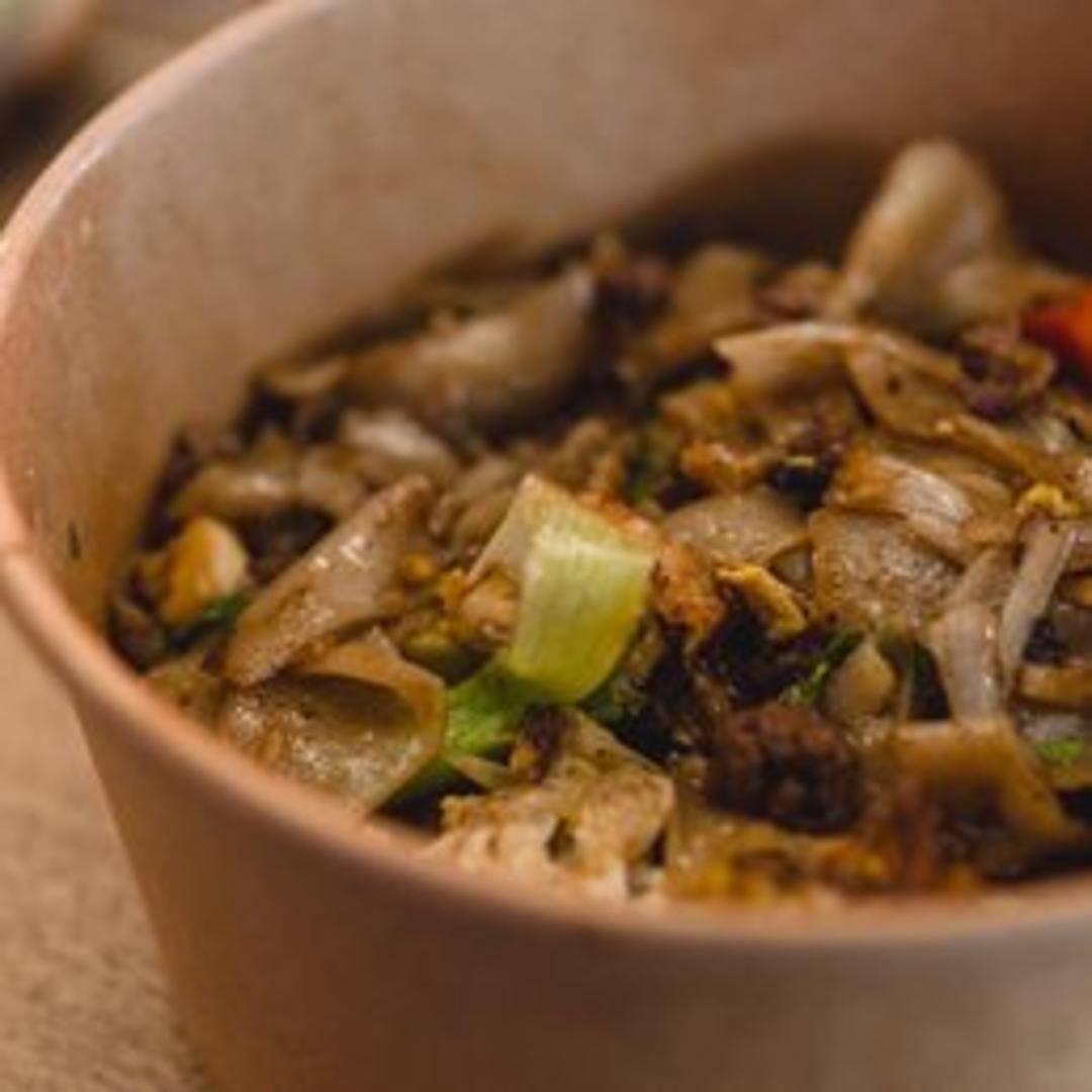 Drunken noodles stir-fried with wide rice noodles, egg, tomatoes, onions, bell peppers, chili, and basil in a spicy sauce. Choice of protein.