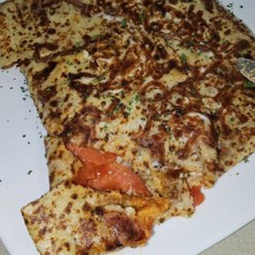 Savory crepe filled with mozzarella, tomatoes, basil, and a balsamic glaze.