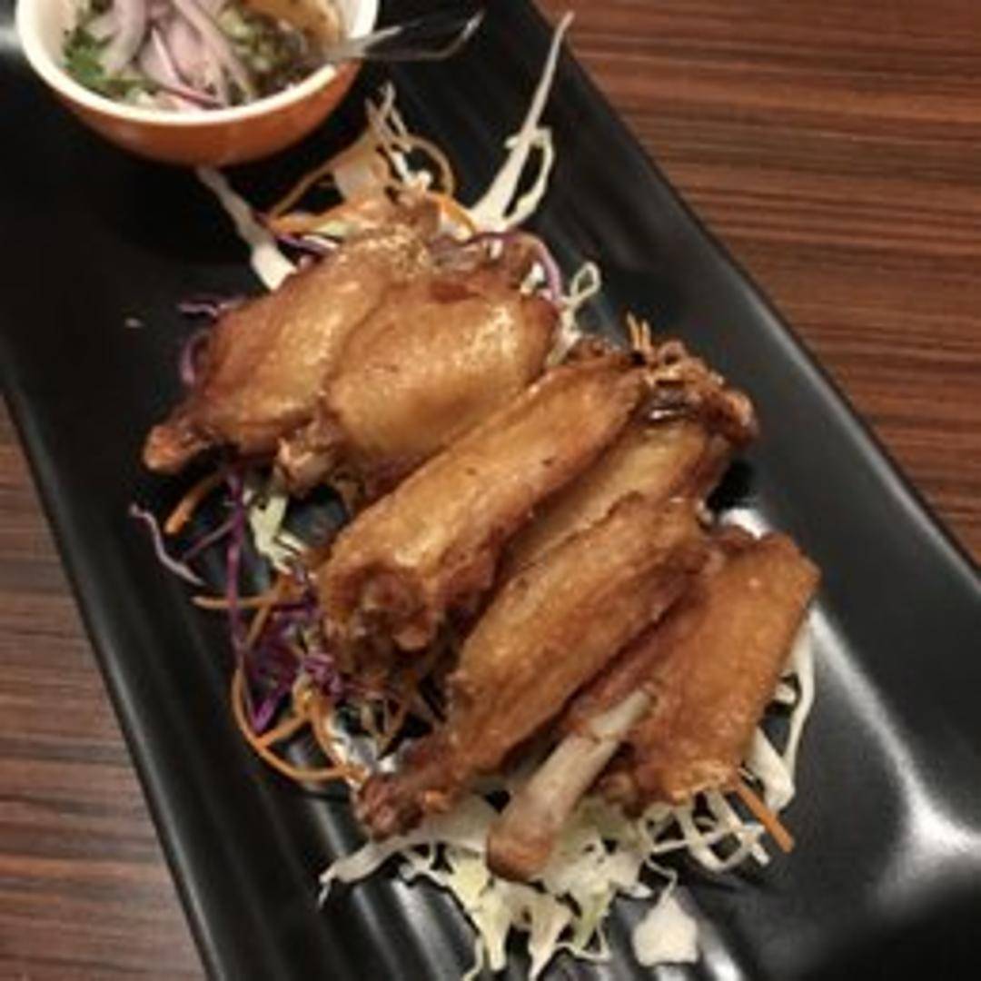 Crispy and flavorful chicken wings, seasoned with a blend of Thai spices and herbs. Served with a dipping sauce.