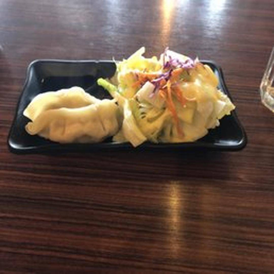 Pan-fried dumplings filled with a savory mixture of seasoned ground pork and finely chopped vegetables. Served with a side of tangy dipping sauce.