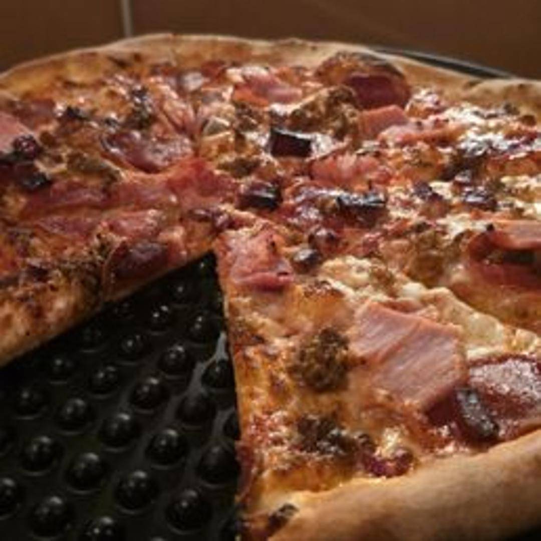 A carnivore's delight loaded with pepperoni, Italian sausage, bacon, and mozzarella cheese on our classic red sauce base. A hearty and savory pizza.