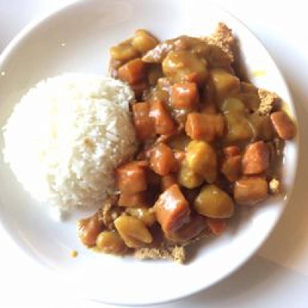 Tender pieces of chicken cooked in a flavorful curry sauce, served over a bed of steamed rice. Aromatic spices create a comforting and satisfying meal.