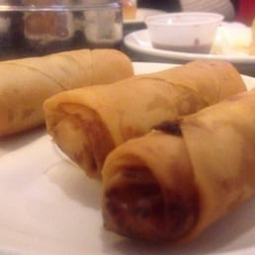 Crispy, deep-fried rolls filled with a medley of shredded vegetables like cabbage, carrots, and celery, along with vermicelli noodles. Served with a side of sweet and sour sauce for dipping.