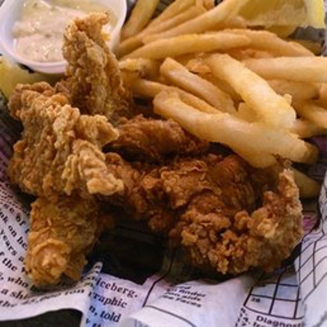 Tender and flaky fried catfish fillets served in a basket with crispy fries and your choice of dipping sauce. A simple yet satisfying seafood meal.