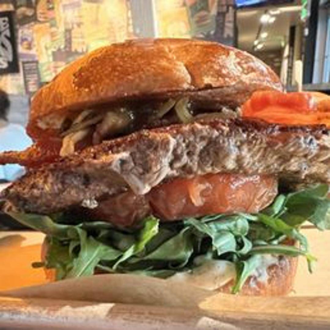 American Wagyu beef patty, Tillamook cheddar, bacon onion jam, lettuce, tomato, pickles, Hopdoddy's secret sauce.