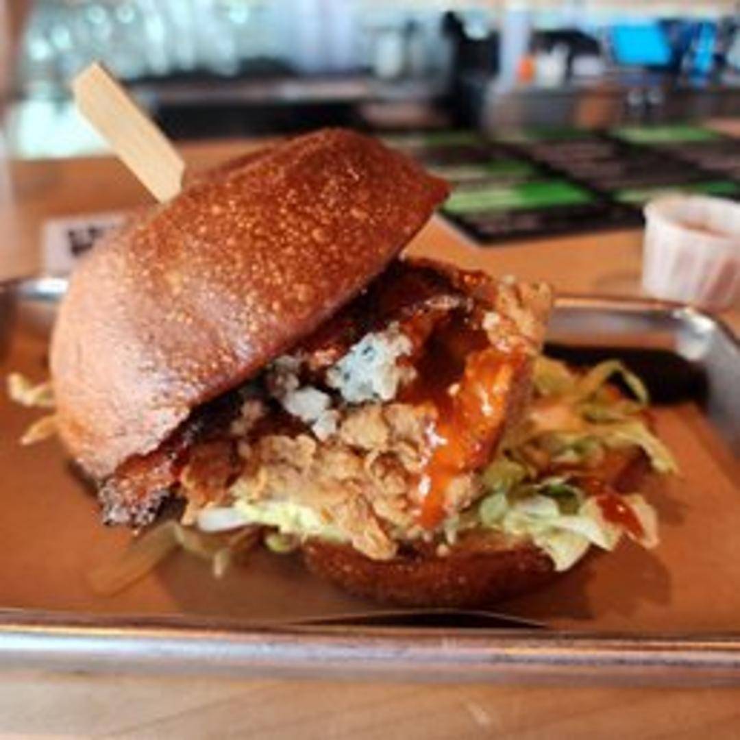 Bison patty, bleu cheese, bacon, lettuce, tomato, pickles, buffalo sauce, Doddy Mayo.