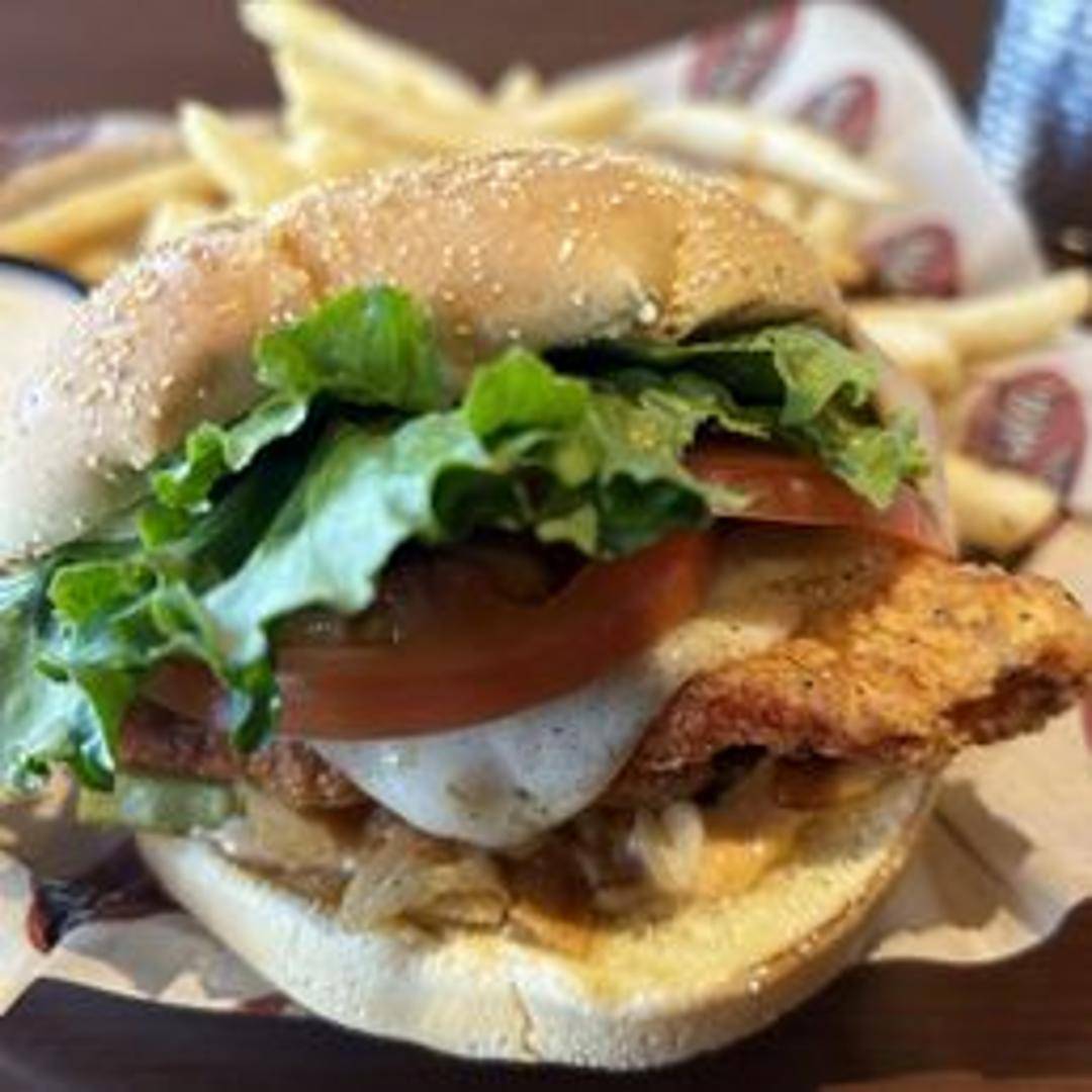 A tender, crispy chicken breast, served on a toasted bun with your choice of toppings, including lettuce, tomato, pickles, and your favorite sauce.