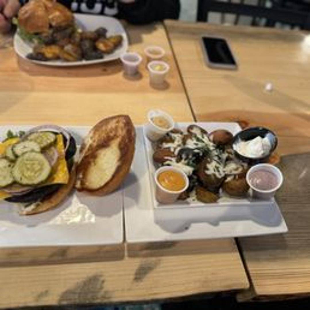 A juicy beef patty topped with melted cheddar cheese, crispy bacon, lettuce, tomato, onion rings and a tangy BBQ sauce. Served on a toasted brioche bun with a side of fries.