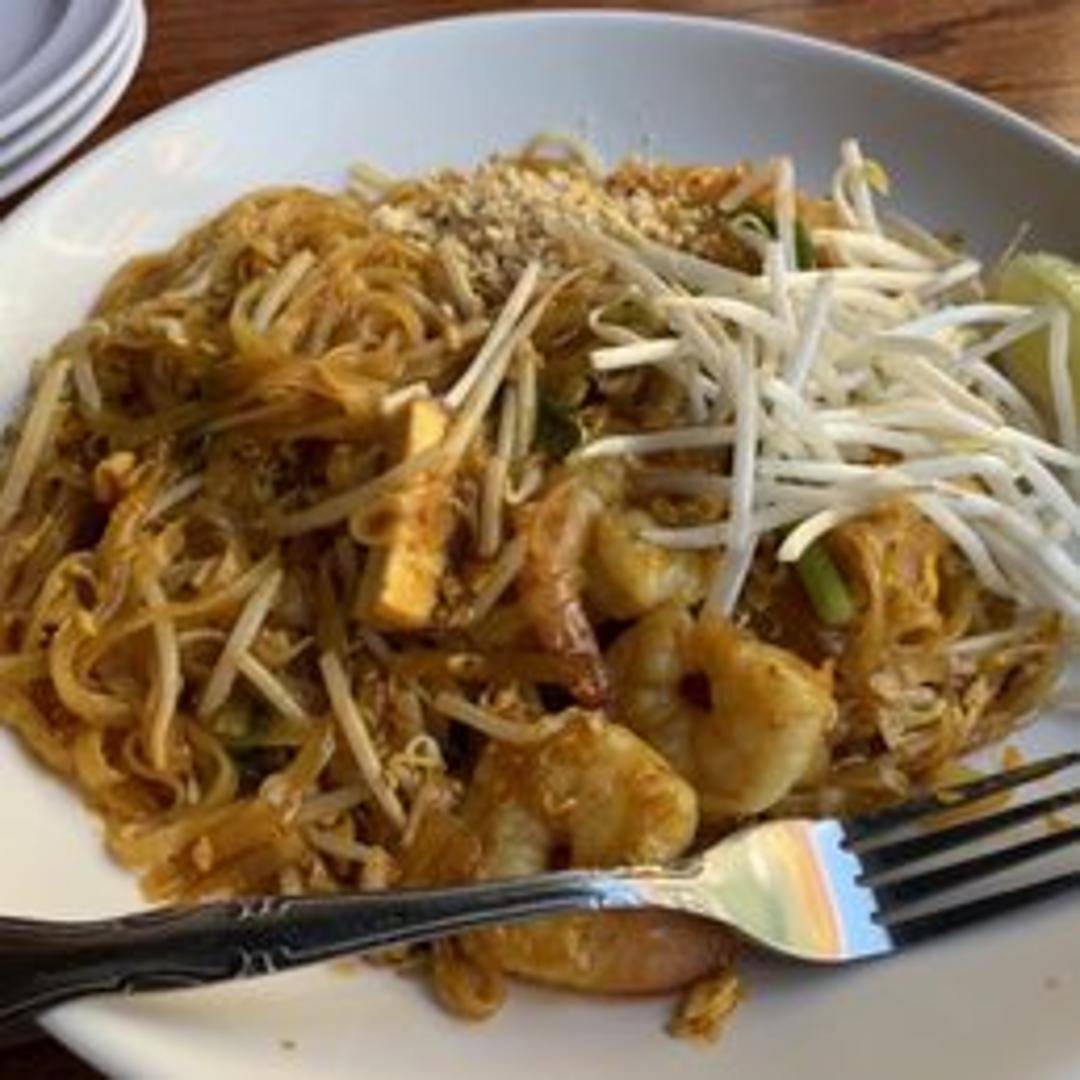 Stir-fried thin rice noodles with egg, bean sprouts, green onions, and ground peanuts in a sweet and tangy tamarind sauce. Choose your protein: chicken, pork, tofu, vegetables, or shrimp.
