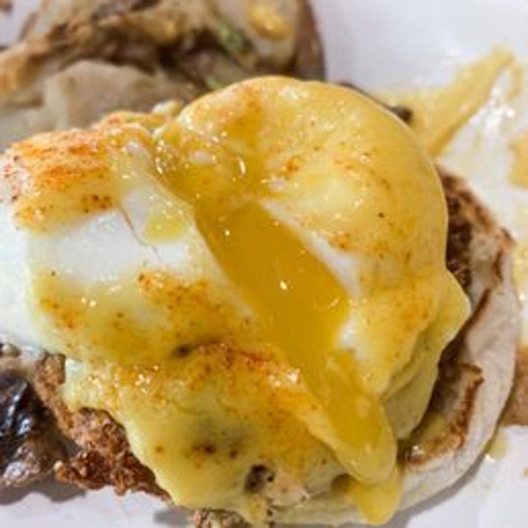 Perfectly poached eggs with creamy yolks, served on your choice of toast with hollandaise sauce.