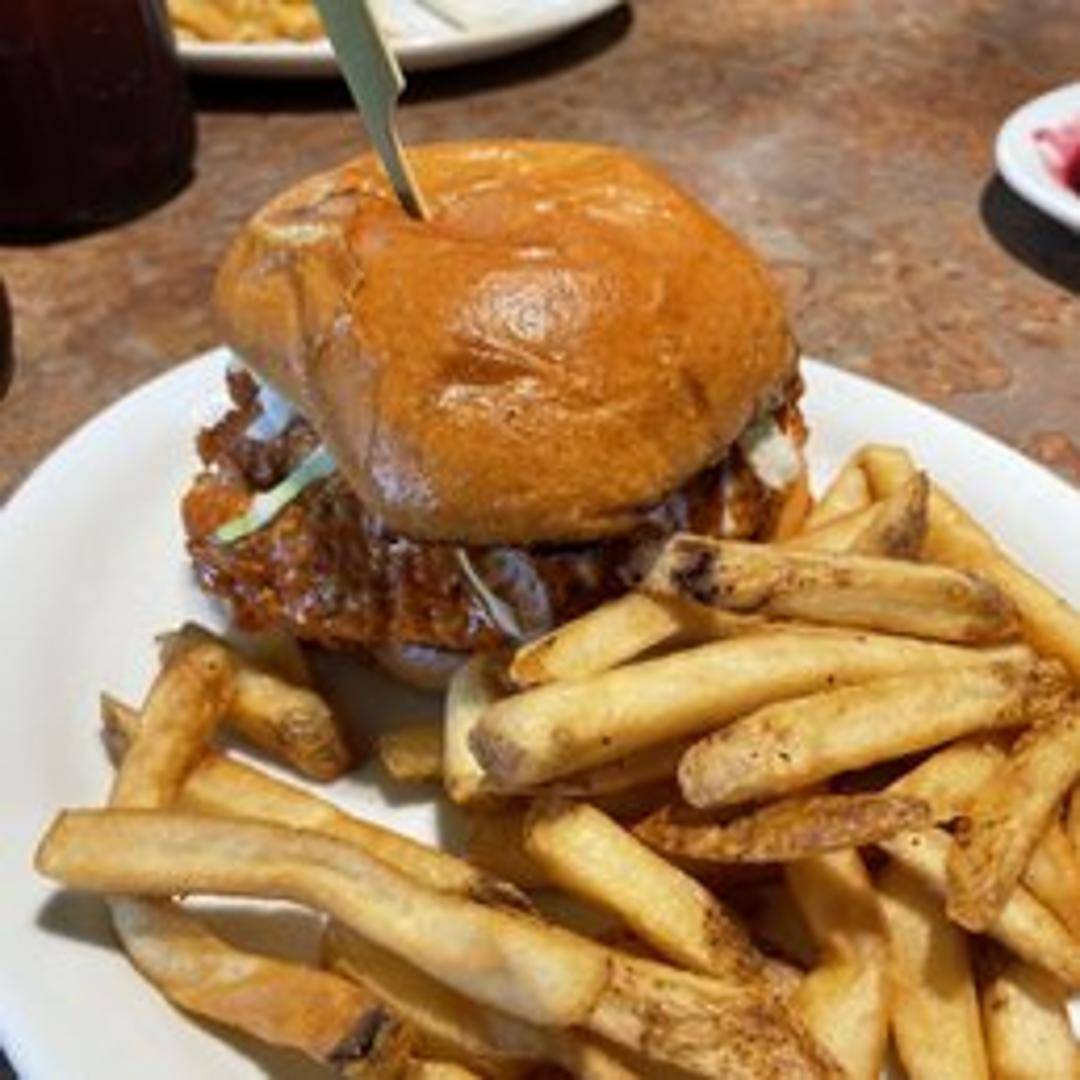 A crispy fried chicken breast coated in a fiery blend of Cajun spices, served on a toasted bun with lettuce, tomato, and a creamy remoulade sauce. A taste of the Louisiana bayou with a kick!