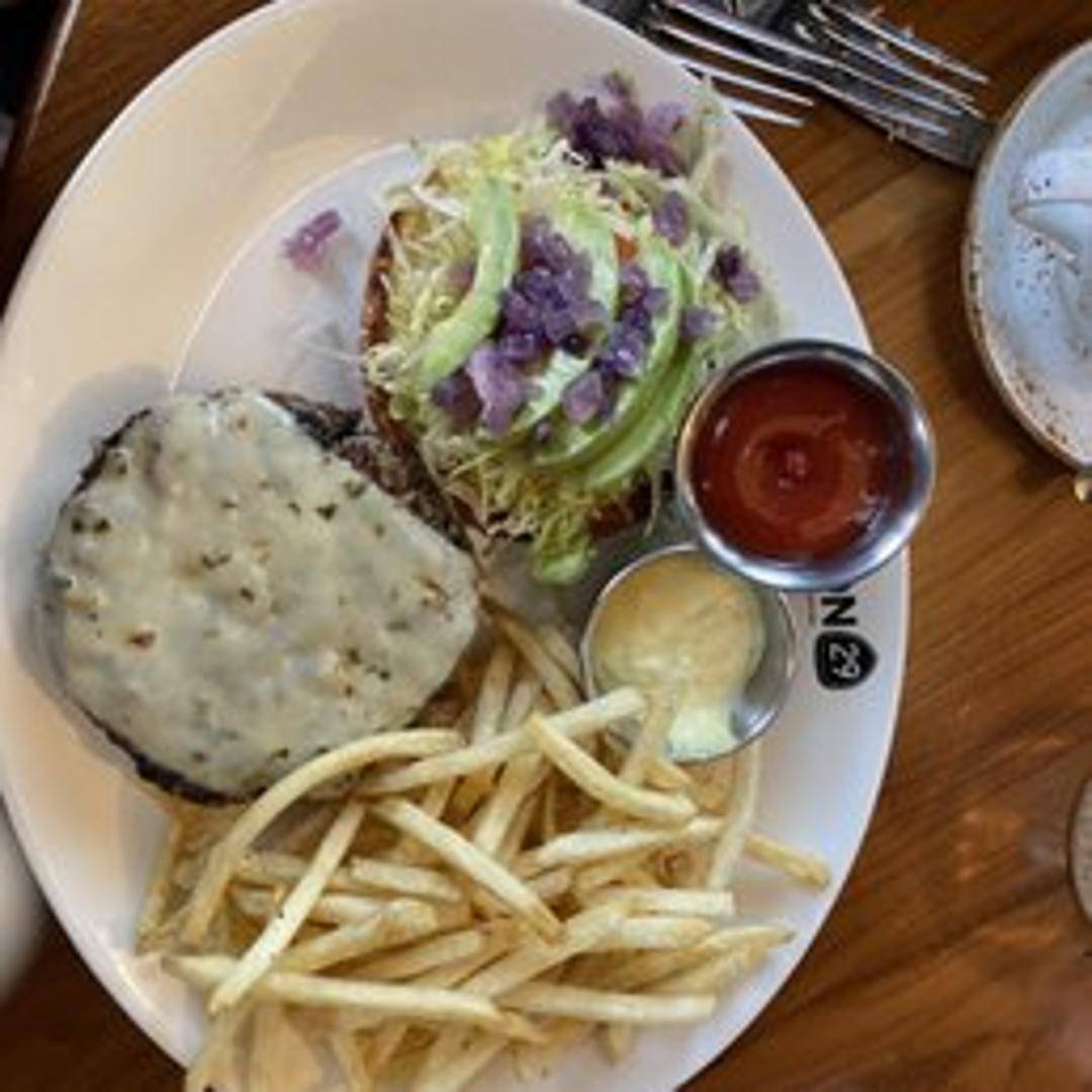 Enjoy a flavorful and satisfying meatless option with our Black Bean Burger. Crafted from a savory blend of hearty black beans and spices, this robust patty is grilled to perfection and served on a toasted bun. It's typically dressed with fresh lettuce, ripe tomato, crisp onion, and often complemented by a special house sauce or your choice of cheese, making for a delicious and wholesome meal.
