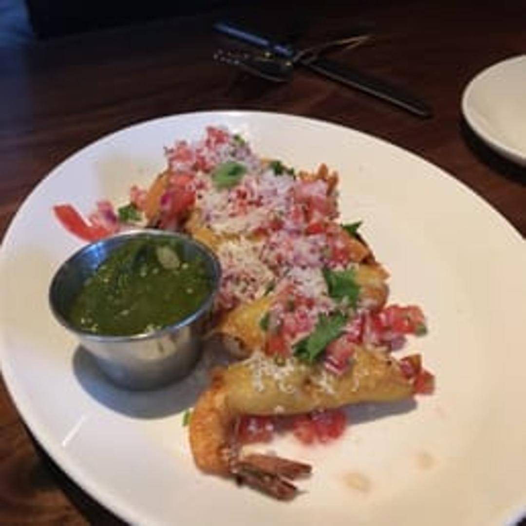 Delight in our crispy Shrimp Taquitos, featuring succulent seasoned shrimp tightly rolled in corn tortillas and fried to a golden, satisfying crunch. Served with your choice of dipping sauces, these savory, bite-sized rolls offer a burst of flavor and a delightful texture, perfect for sharing.