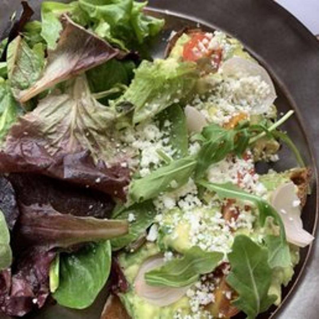 Our elevated Avocado Toast features a generous layer of perfectly ripe, smashed avocado, seasoned with a sprinkle of coarse sea salt and a squeeze of fresh lime, spread atop a thick slice of artisanal, toasted sourdough bread. This vibrant and satisfying dish is garnished with a hint of red pepper flakes for a subtle kick and fresh microgreens, offering a delightful texture and burst of flavor.