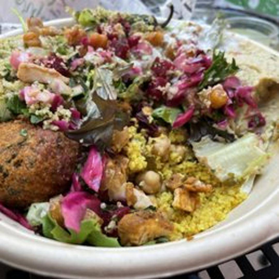 Thinly sliced, marinated chicken slowly cooked on a rotating spit. Seasoned with traditional Middle Eastern spices and herbs, creating a flavorful and tender protein option. Served warm.