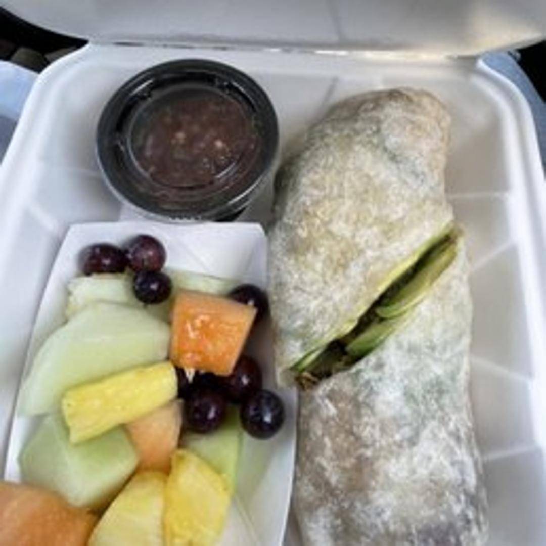 A hearty breakfast burrito filled with scrambled eggs, your choice of sausage or bacon, shredded cheese, and seasoned potatoes, all wrapped in a warm flour tortilla. Add salsa for an extra kick.