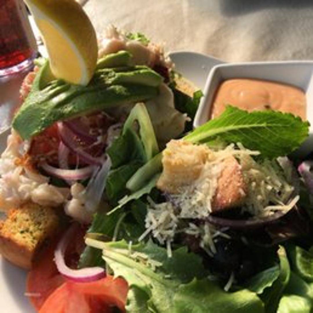 A toasted sourdough sandwich piled high with a creamy blend of shrimp, crab, and melted Monterey Jack cheese. Served with a cup of tomato bisque.