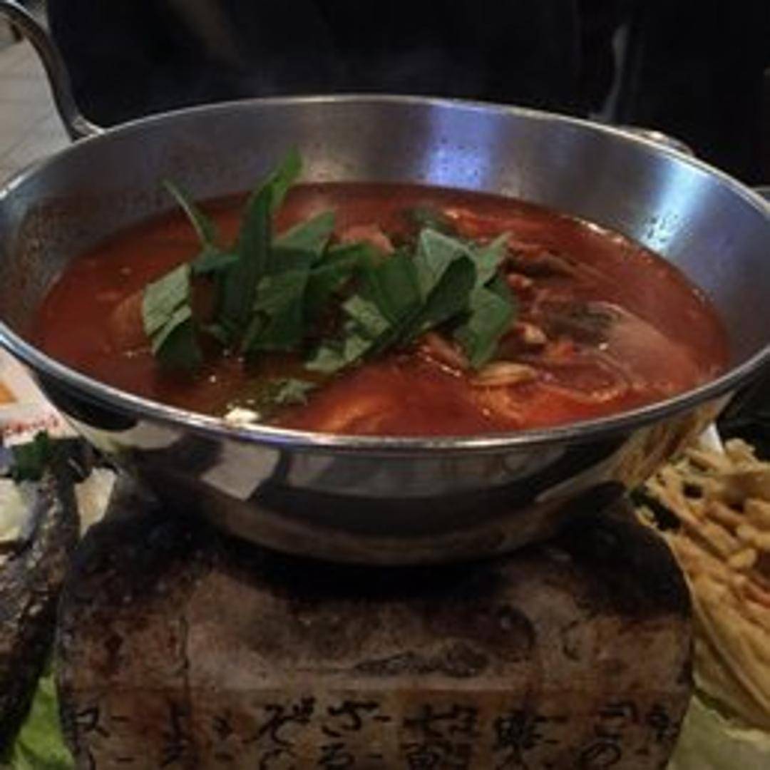 A robust and invigorating Korean-style stew, brimming with tender chunks of fresh fish immersed in a fiery, savory broth. This comforting dish is generously laden with an assortment of vibrant vegetables, such as daikon radish, green onions, and tofu, creating a deeply flavorful and aromatic experience. Served piping hot, it's a perfect choice for those seeking a hearty, spicy, and warming meal.
