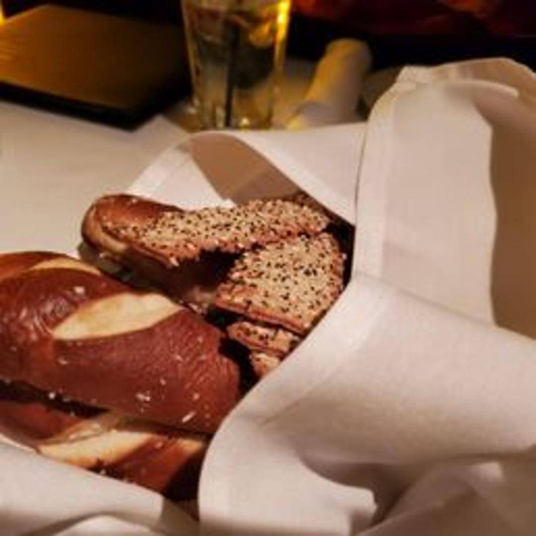 An assortment of freshly baked breads, served warm with creamy butter, offering a delightful beginning to your dining experience.