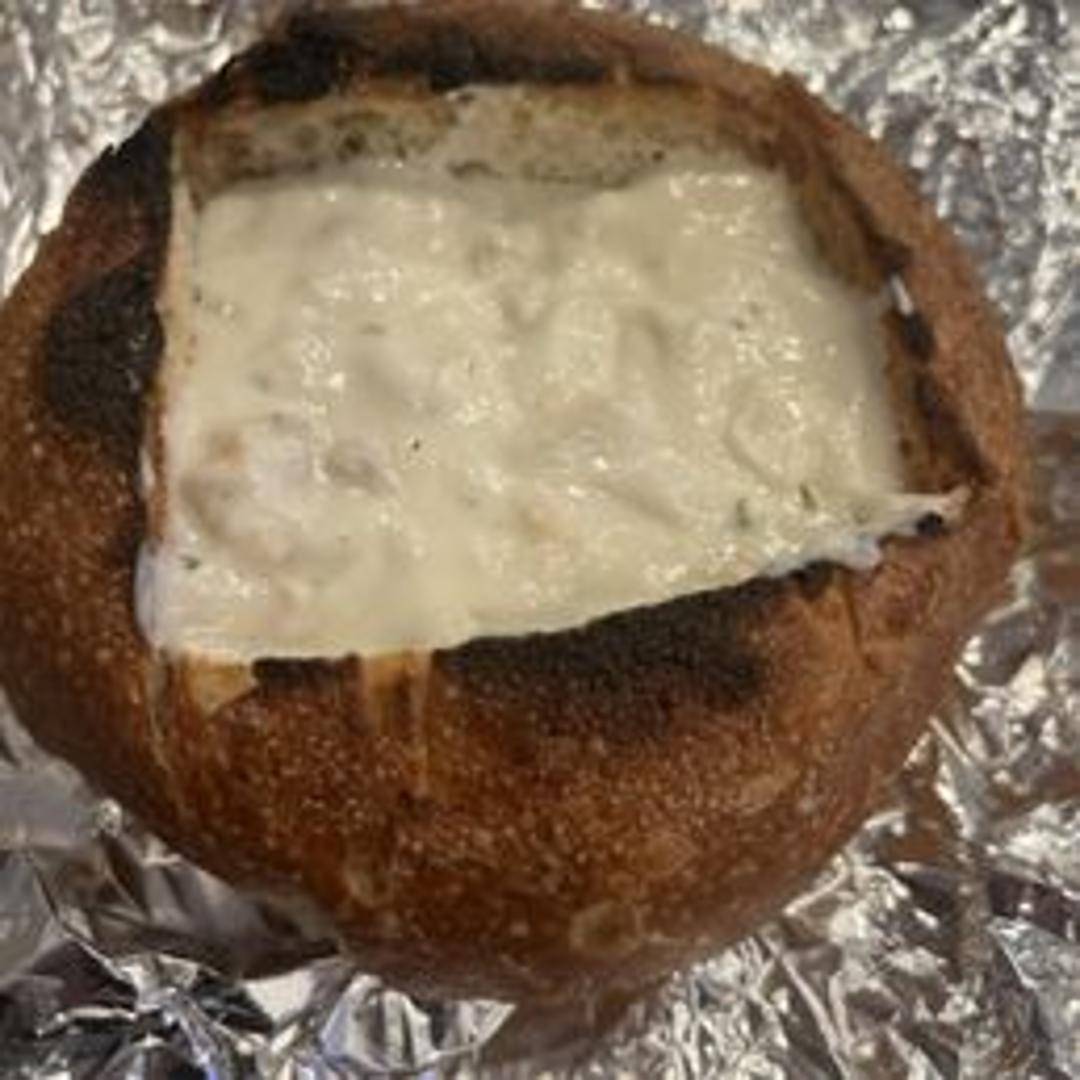 A creamy and hearty New England-style clam chowder, packed with clams and potatoes. Served in a bread bowl or a cup.