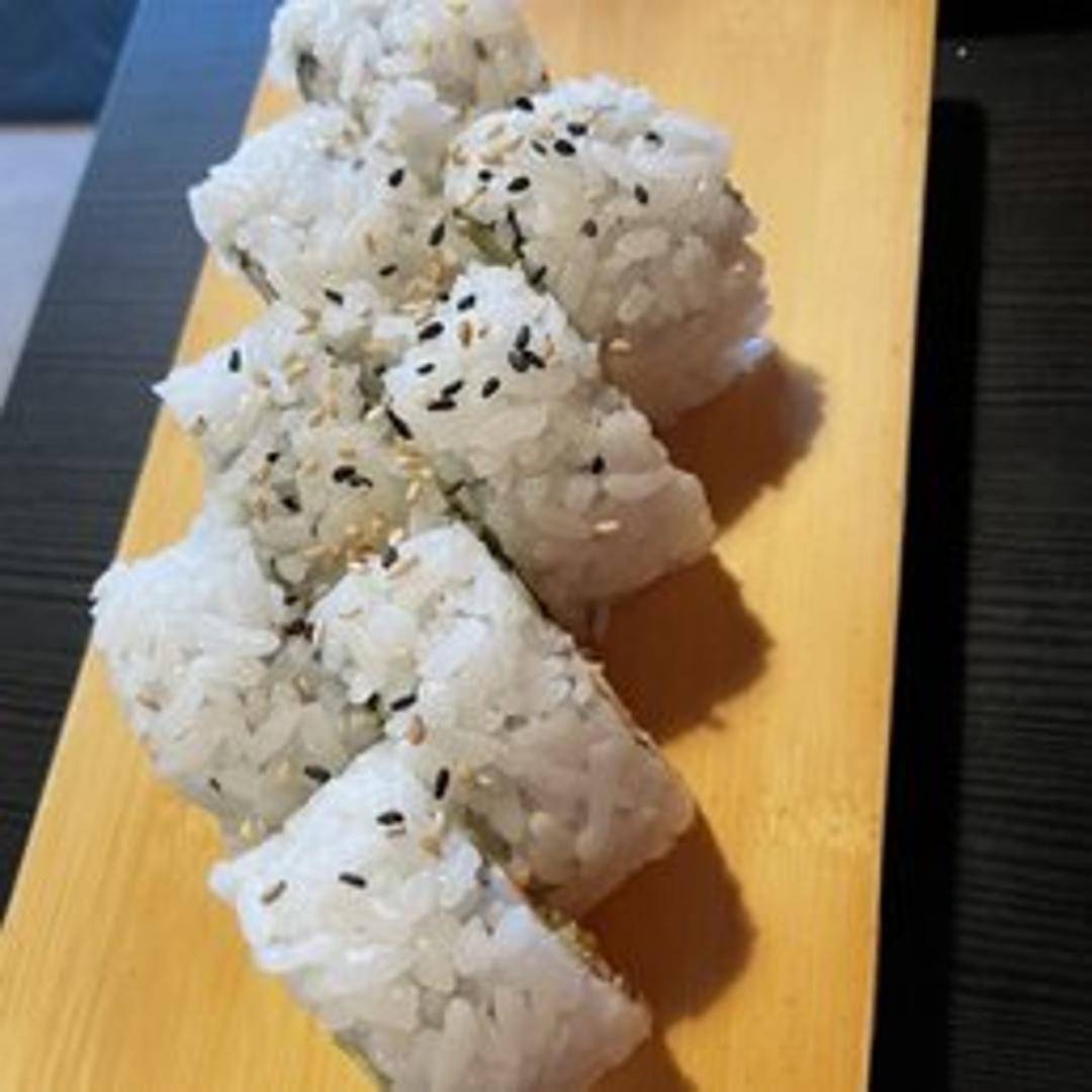 Classic sushi roll with avocado, cucumber, and imitation crab meat. Rolled in seaweed and rice.