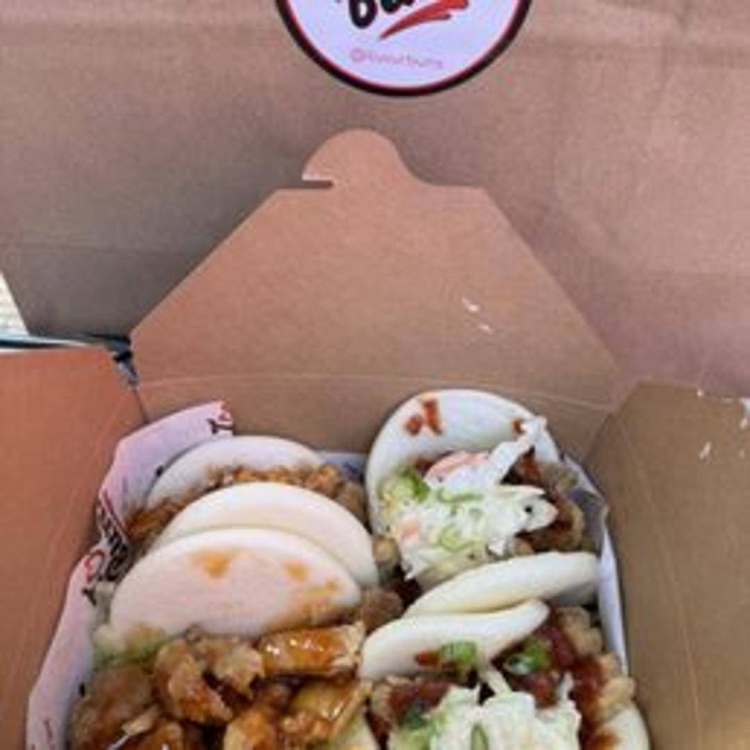 A sweet and savory bao bun featuring a crispy exterior drizzled with a spicy honey glaze.