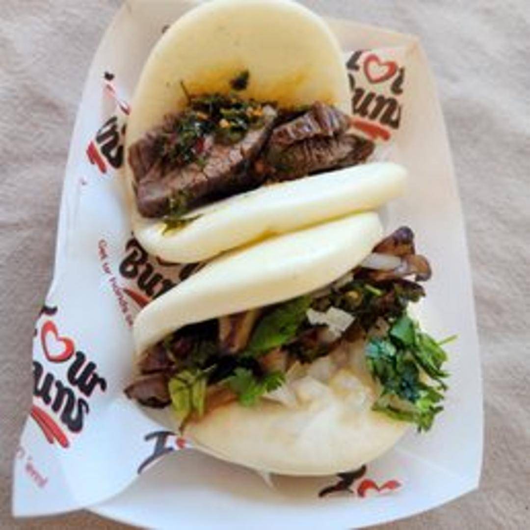 A flavorful bao bun filled with a Latin-inspired savory filling. Exact ingredients may vary, offering a unique and delicious experience.