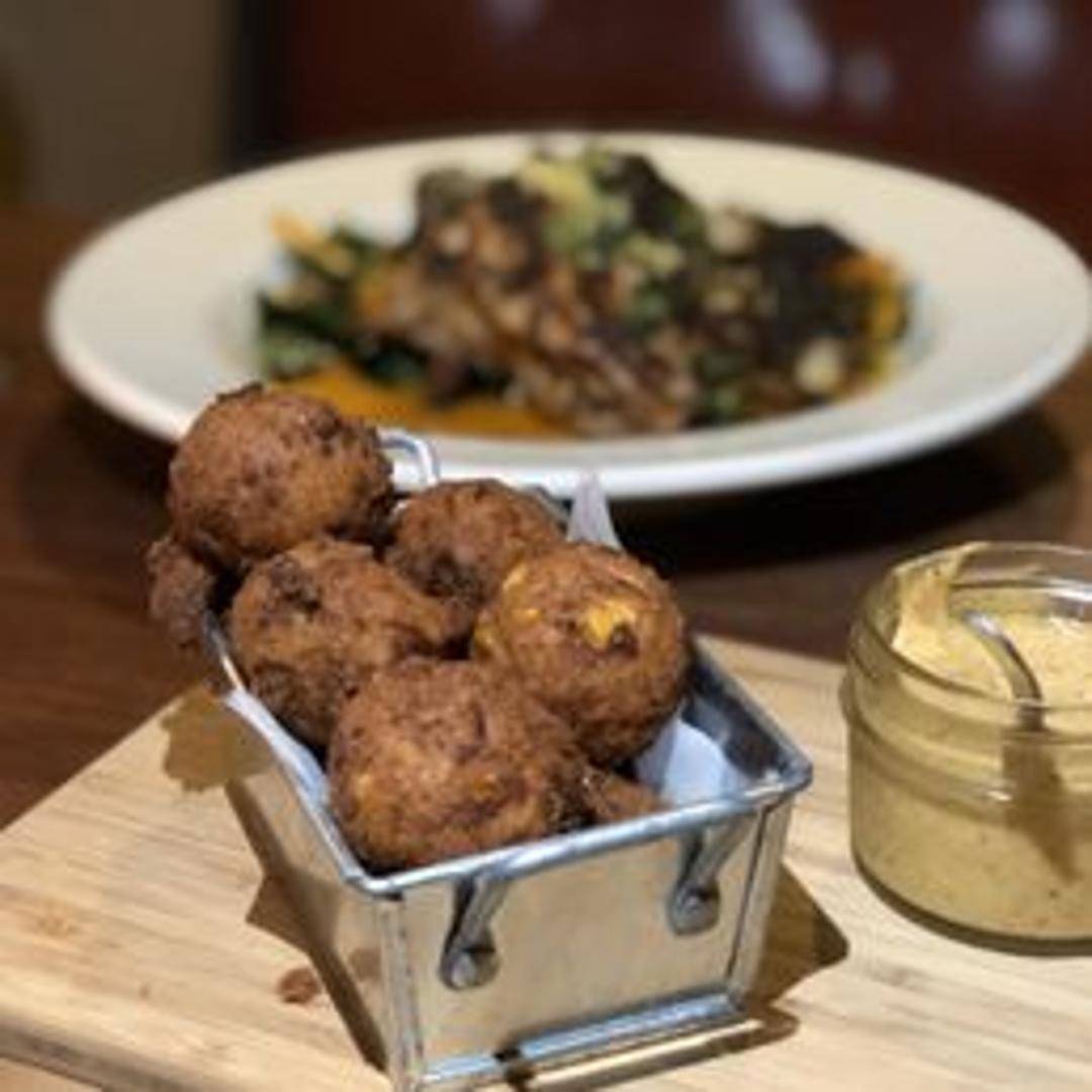 Savory beignets filled with a creamy mixture of crawfish, corn, and Cajun spices. Lightly fried and dusted with powdered sugar for a touch of sweetness.
