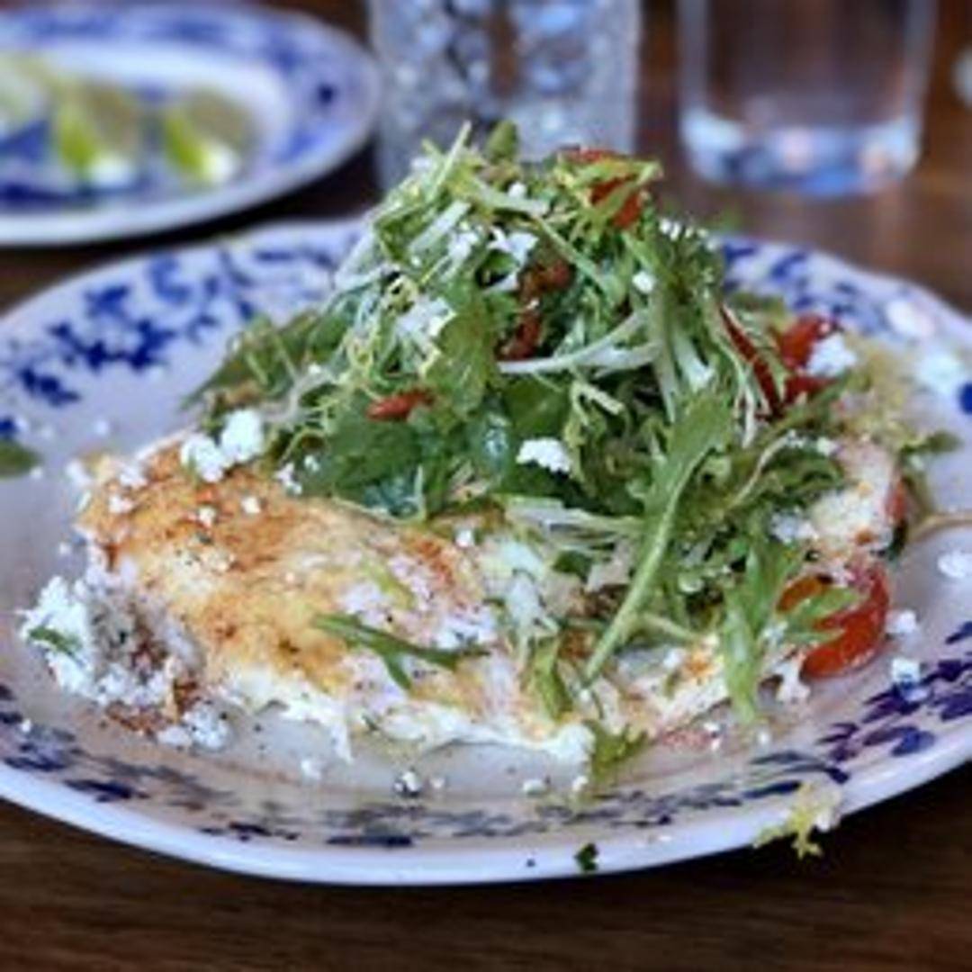A light and fluffy frittata made with egg whites and creamy goat cheese, filled with seasonal vegetables and herbs. Served with a side of fresh fruit and your choice of toast.