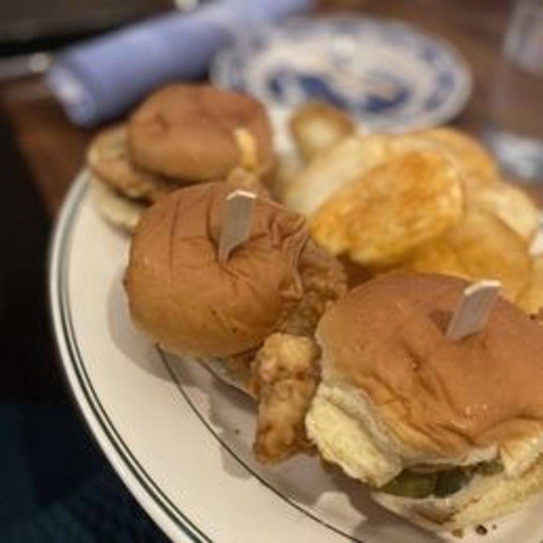 Miniature, melt-in-your-mouth sliders featuring juicy, crispy chicken, drizzled with a sweet and spicy hot honey glaze. Served on soft, toasted buns with a creamy slaw.