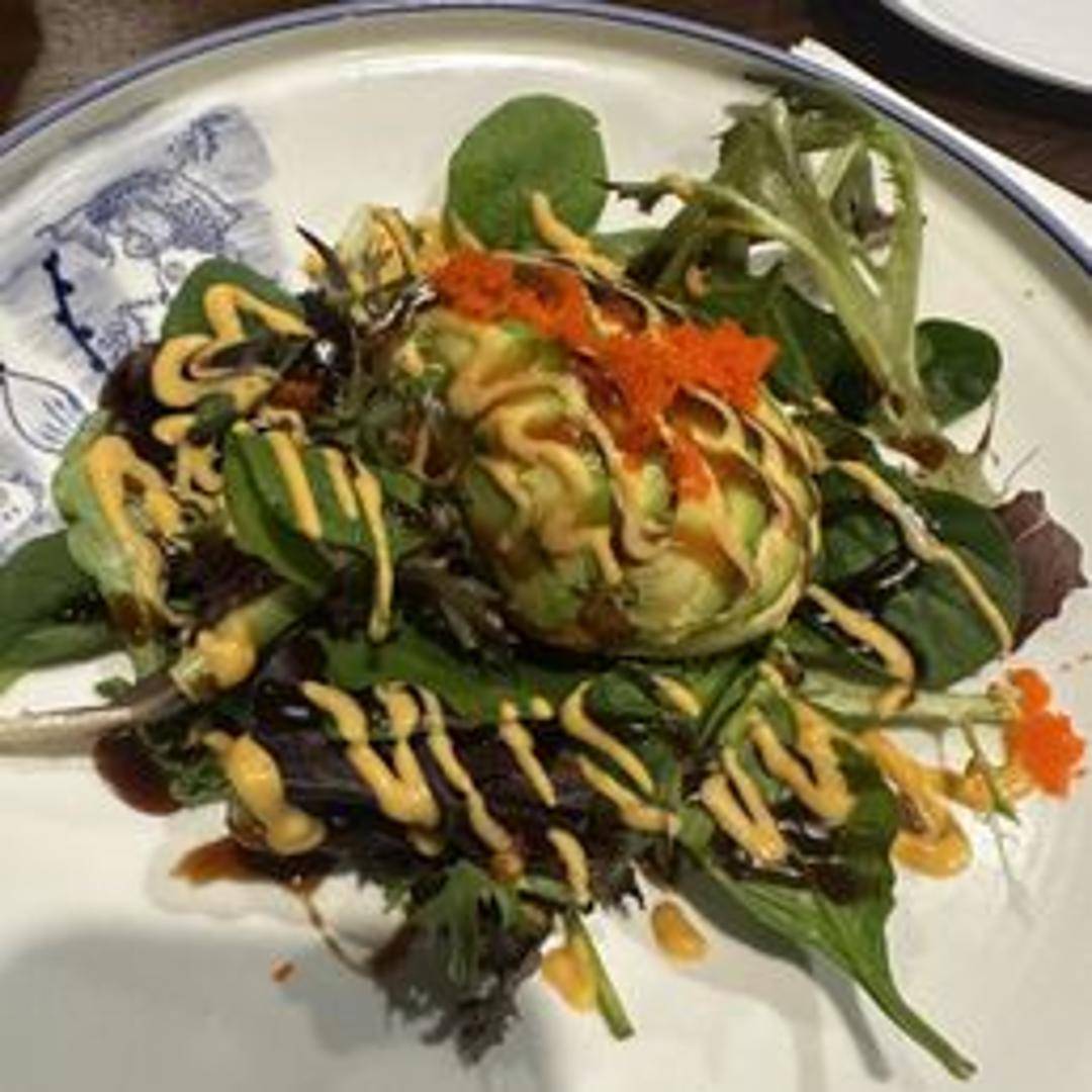 A creatively presented appetizer made with avocado, spicy tuna and crab. Lightly fried and served with a variety of sauces.