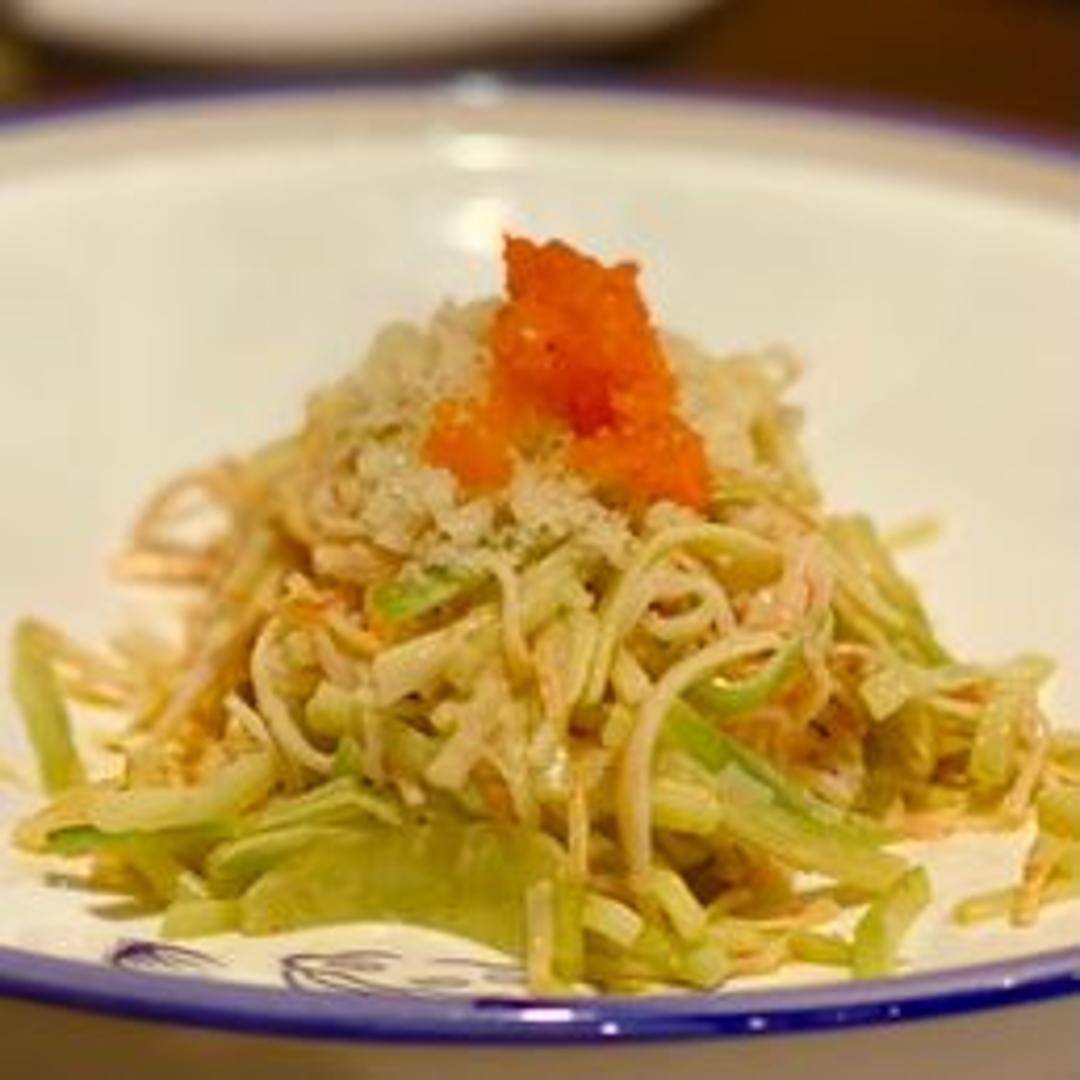 Shredded crab stick (Kani) mixed with mayonnaise, cucumber, and masago (fish roe). A light and refreshing salad with a slightly sweet and savory flavor.